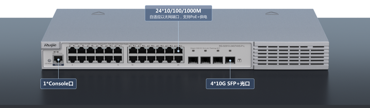RG-S2910-P-L系列24口千兆三层网管型盒式接入层PoE交换机,万兆上行,RG-S2910-24GT4XS-P-L